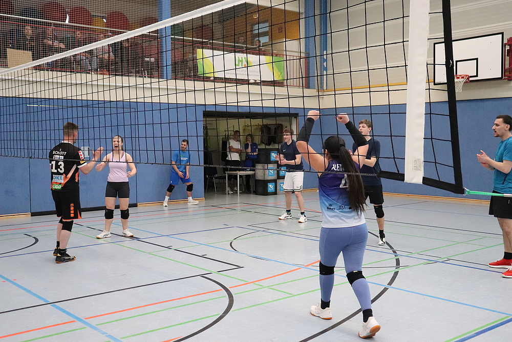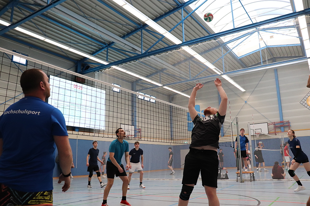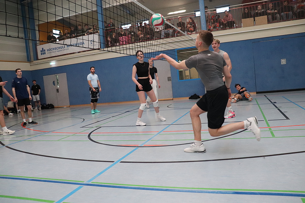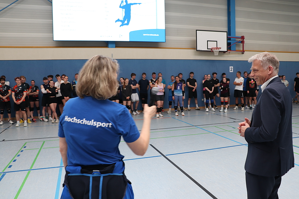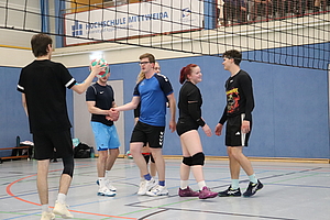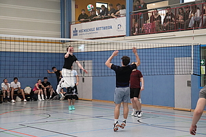Der Rektor der Hochschule, Prof. Dr. Volker Tolkmitt ließ es sich auch in diesem Jahr nicht nehmen, das Turnier zu eröffnen. Besonders freute er sich dabei über die Teilnahme zahlreicher Mitarbeitenden der Hochschule. Neben den Professoren Serge Velesco und Jörg Mehlis startete auch Prof. Alexander Zill im Team der Fakultät Soziale Arbeit. Mit seiner 4. Teilnahme etabliert dieser sich zu einer festen Größe im Kampf der Fakultäten um den Titel der besten Volleyball-Fakultät.